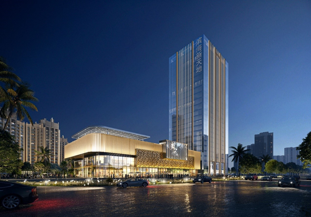 中國電建大灣區科創中心基地位于廣東省廣州市花都區,是由中電建(廣州)城市投資發展有限公司投資開發建設。該項目幕墻形式主要包括玻璃幕墻、鋁板幕墻等,總建筑面積約為62000平方米,幕墻面積38000平方米,建筑高度為162 1米。該項目是一棟超高層辦公樓,建成后將打造成為具備總部基地的地標性建筑。海口濱海新天地商業綜合體 位于海南省海口市,是由